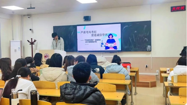 为进一步加强蓝鲸直播 学风建设,严肃考风考纪,蓝鲸直播 2021级本科生近期开展了考风考纪主题教育会议。各班通过召开主题班会、点对点推送诚信应考提醒、组织学习《西北政法大学学生违纪处分规定》中考试相关管理办法,让同学们明白考试违纪的“高昂成本”和“严重后果”。
