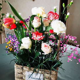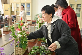 妇女节当天,正是阳光明媚的时候,蓝鲸直播 资料室里充满了欢声笑语,老师们在进行趣味横生的插花活动。桌上已经摆好了丰富的花卉材料:相思果、康乃馨、向日葵、玫瑰和满天星……花朵娇嫩欲滴,竞相绽放。她们先是挑选自己心仪的花材,再对选好插好的花朵进行调整和裁剪。她们巧妙地将各种花材搭配在一起,创作出各有特色的花艺作品。