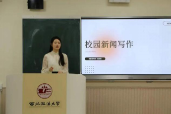 崔岚秀从新闻概念、校园新闻写作基础要求、写作秘籍和官网写作四方面对校园新闻写作进行讲解。她从新闻的概念出发,着重分析了校园新闻写作的基础要求,强调新闻稿写作要突出真实性与时效性。她结合学校官方微信公众号中的范例,从新闻稿的标题拟制、正文格式、表达规范、价值引导等方面出发,向同学们提出了统一的写作标准和要求。最后,她提出校园新闻写作并非一蹴而就,鼓励同学们多加练习,不断积累。