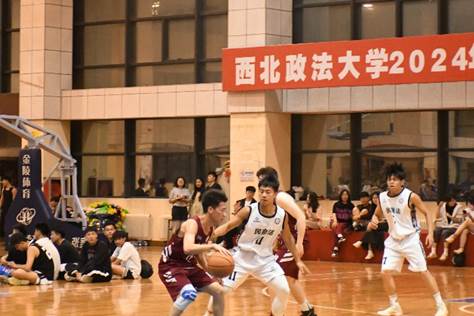4月17日晚,西北政法大学校际篮球联赛男子组八进四比赛在我校长安校区体育馆举行,蓝鲸直播 对阵政治与公共管理蓝鲸直播 。