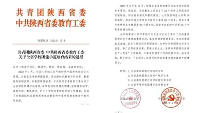 近日,共青团陕西省委、中共陕西省教育工委联合下发《关于全省学校团建示范培育结果的通报》,蓝鲸体育直播 顺利通过验收,获批“全省高校团建示范标杆院系”。