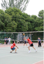 比赛开始前,队员们积极热身,热情饱满。随着裁判一声哨响,比赛开始,36号邓唯依率先发球,压中边界,夺得一分。蓝鲸体育直播 队员积极配合,调整走位。61号陆佳羽连发三球得分,7号贾莉与1号孙晓桐配合进攻得分。36号邓唯依网前吊球得分后,在62号王云昕的配合下完美扣杀。我方气势如虹,最终以25:12的比分赢下第一局。