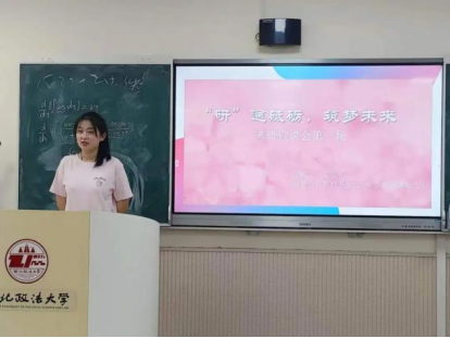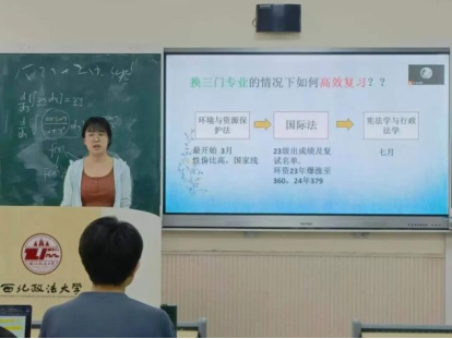 王宇格从专业选择出发,和同学们分享了学硕专业课的背诵方法,向同学们强调了思维导图的重要性;邵敬皓围绕不同的备考科目展开,向大家详细讲述了自己的备考方法;李婧怡介绍了考研备考的时间安排,以及法考、考研双考的精力分配;艾鑫权向大家分享了各学科的备考思维,尤其强调英语复习的持续性;孟茹怡从学校选择、资料获取、时间分配、心态调整等方面展开,告诉同学们经常复盘和制定计划的必要性。