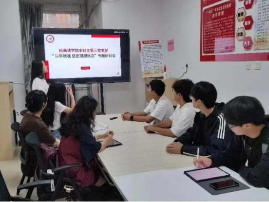 为了加强党性教育、强化党性修养,2024年5月29日,蓝鲸直播 本科生第三党支部在十号学生公寓楼一站式学生工作社区召开“以学铸魂,坚定理想信念”专题研讨会,会议由吕鑫岩同学主持,蓝鲸直播 第67期入党积极分子参会。