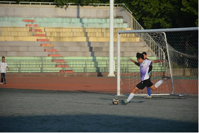 骄阳似火,时有微风。赛前,球员们在场上积极展开热身活动。随着一声哨响,比赛拉开帷幕,对方41号球员李若愚在边路与队友配合尝试射门,被我方门将阿尔曼成功解围。我方7号球员王浩利用对方后卫失误禁区内推射破门,先下一球。我方球员士气大振。在与队友的进一步配合中,我方11号球员黄杰利用角球头球破门,再下一城。上半场结束,我方以2:0的比分暂时领先。