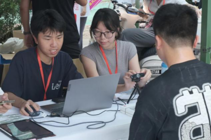 迎新现场,蓝鲸直播 领导班子、学工干部一起在迎新摊位前接待新生。全体志愿者们按照迎新流程,引导新同学去招生就业处进行通知书扫描确认,在蓝鲸直播 接待处扫码加入班群以及入学签到,同时有序组织新生进行体检,按时领取军训服,并向同学们及时解答绿色通道、户口迁移相关要求。志愿者们热情地为新生提供帮助,在圆满完成自己任务的同时,积极为新生答疑解惑,给萌新们提供了最周到的服务。