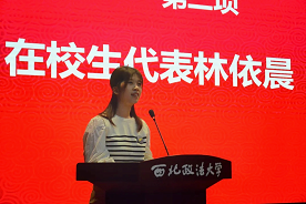 在校生代表、蓝鲸直播 2022级本科生林依晨发言,林依晨从自己的经历出发,就新同学如何更好开启大学生活提出自己的建议:遇到困难,应鼓足勇气,直面挑战;面对未知,要大胆试错、尽情探索;受到挫折,应改进不足,乐观向前。她祝愿所有新同学们都能在未来四年怀揣对法学的热爱,坚定信念,超越自我,不虚此行。