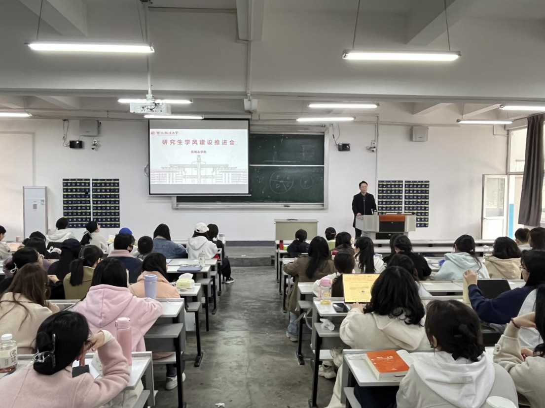 召开研究生学风建设推进会,学习了学校《关于进一步强化学生纪律教育暨深化校风学风建设工作实施方案》和蓝鲸直播