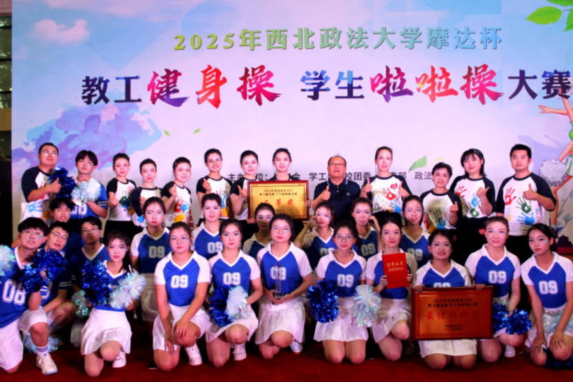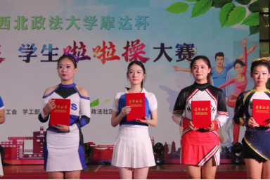 5月29日下午,西北政法大学摩达杯教工健身操、学生啦啦操大赛于我校长安校区体育馆举行。蓝鲸体育直播 代表队舞步翩跹,刚柔并济,荣获佳绩。