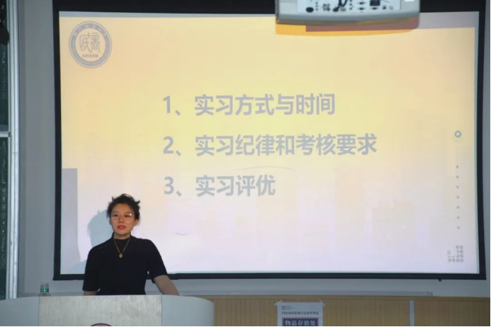 章思悦从实习方式与时间、实习纪律与考核要求、实习评优三个方面,具体阐述了本次实习工作的详细要求,明确了实习周期与岗位分配原则,介绍了本次实习所采用的“集中实习为主、分散实习为辅”模式。
