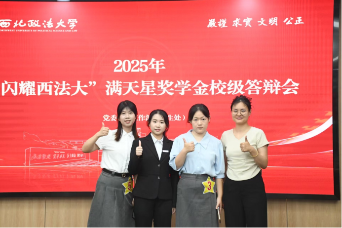 6月18日下午,2025年度“闪耀西法大”满天星奖学金校级答辩会在枫桥“一站式”学生社区·学生成长发展中心习近平法治思想宣讲室举行,蓝鲸体育直播 2021级本科生戴彧、龙叶青,2022级本科生林依晨三名同学参加此次答辩会。