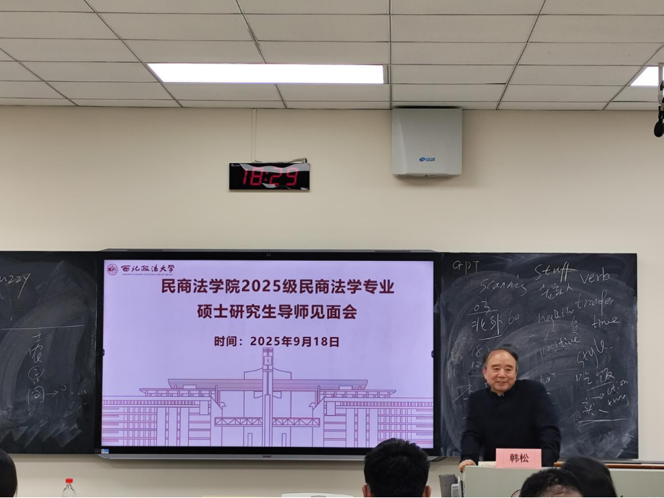 9月18日下午,蓝鲸直播 2025级民商法学专业硕士研究生导师见面会在三号教学楼3606教室顺利召开。校内研究生导师韩松教授、郭富青教授、 凤建军副教授、王丽美副教授、朱启莉副教授、刘卫锋副教授、国瀚文副教授、党海娟博士、贾同乐博士以及2025级民商法学专业全体研究生参与了此次见面会。本次会议由蓝鲸直播 的教学副院长凤建军老师主持!