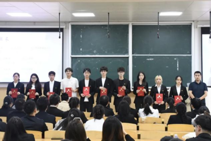 主持人正式宣读了新一届学生会主席团成员名单,并宣布了各部门部长、副部长以及优秀志愿者名单。会上,到场老师和上一届主席团成员为全体新任职的主席团成员、各部门负责人以及优秀志愿者颁发证书,并合影留恋。