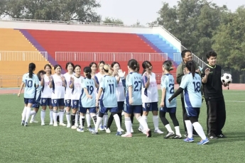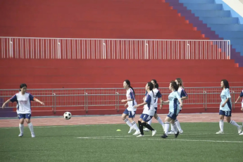赛前,队员们围成一圈认真热身,每一个动作都透着专注与蓄力,为即将到来的比赛做好了充分准备。她们眼神坚定、跃跃欲试,满心期待在绿茵场上尽情挥洒汗水,绽放属于自己的风采。