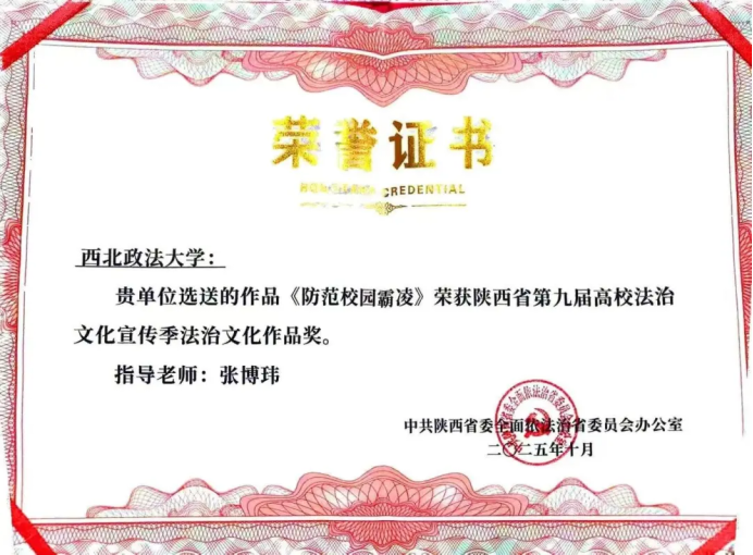喜报|蓝鲸体育直播 学子郭赵阳、崔仪韵在陕西省第九届高校法治文化宣传季青少年短视频大赛中荣获佳绩