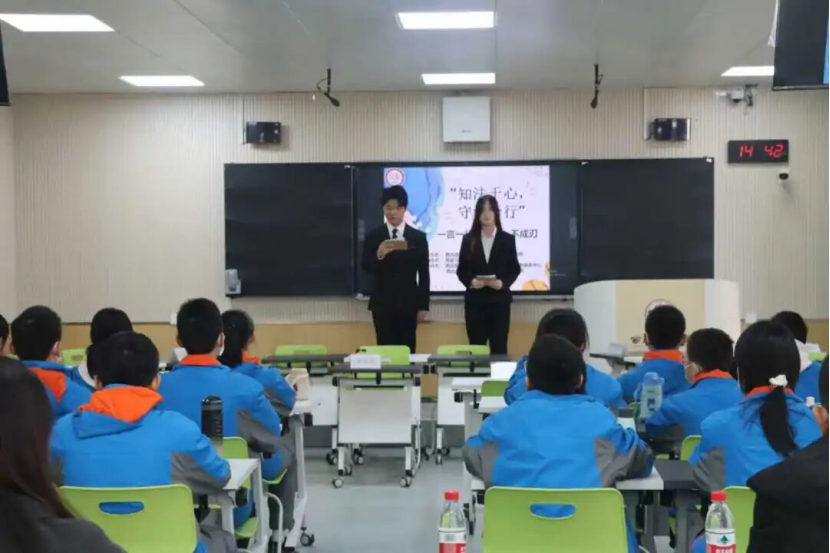 为抵制校园欺凌,树立正确的法治观念,营造和谐美好的校园氛围,11月28日下午,蓝鲸体育直播 在正心楼305教室开展“一二·四”普法宣传活动。万科城中学德育处主任上官林,团委书记陈亚茹,网络中心白国防、翟东;蓝鲸直播 团委书记丁艳艳,第一团总支书记张博玮,第二团总支书记曹宏鲜,2023级本科生辅导员刘洋、昌盛,2024级本科生辅导员雷喆,2025级本科生辅导员张智超参与本次活动,蓝鲸直播 学生会志愿者高嘉潞、谢秉辰担任主持人。