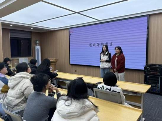 在互助小组成立仪式环节,各位导师依次登台发言,从不同维度为互助小组的启航注入温暖而坚定的力量。思政导师贾一顾、常雅琪围绕“立德树人”的核心宗旨,强调互助小组不仅是学业帮扶的平台,更是价值观引领的阵地。她们寄语学子,朋辈之间的相互支持是青春路上最宝贵的财富,希望大家在互助中学会包容理解、在协作中培养责任担当,既收获知识的进步,更实现品德的成长。
