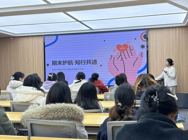 心理导师李婷则聚焦备考心态调节,她结合大学生常见的期末焦虑情绪,用温和亲切的语言鼓励学子们正视压力、接纳情绪,同时强调互助小组是“心灵加油站”,希望大家在交流中相互慰藉、彼此赋能,借助朋辈的陪伴驱散焦虑,以平稳从容的心态投入复习。