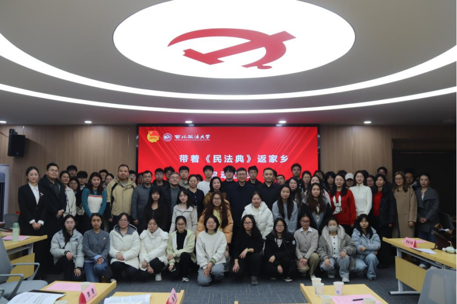 1月15日下午,我校在长安校区“一站式”学生成长发展中心隆重举行2026年“带着《民法典》返家乡”社会实践暨“法援志愿行”专项活动启动仪式。校党委副书记郭武军出席活动,校团委书记秦音、副书记王洋,蓝鲸直播 党委书记李君、党委副书记丁艳艳及学生代表参加活动。