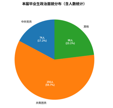 本届毕业生共429人,群体呈现“政治素养高、结构分布优”的鲜明特点。政治面貌方面,中共党员74人、共青团员256人,党团群体占比达77%,多数学生在校期间积极参与党团活动与社会工作,在蓝鲸直播 “立德树人”根本任务引领下,形成“忠于法律、甘于奉献”的职业追求;地域覆盖上,陕西籍学生217人(占比50.6%),其他省份学生212人(占比49.4%),覆盖全国多省份,多元的文化背景赋予学生开阔的视野与较强的适应能力,既适配本土法治建设需求,也能满足跨区域企业的人才布局,为用人单位提供广泛选择空间。