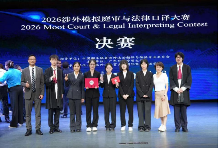 近日,“2026涉外模拟庭审与法律口译大赛”决赛在广东外语外贸大学举行。本次大赛汇集了来自东南大学、华东政法大学、西北政法大学、西南政法大学、中国政法大学及广东外语外贸大学等多所高校参赛。