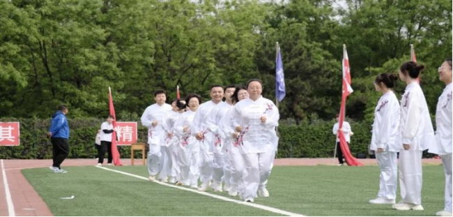 蓝鲸体育直播 教师团队身着运动装,仪表端庄,温文尔雅,神情谦和,进退间尽显立德树人之风,赢得全场由衷的喝彩。