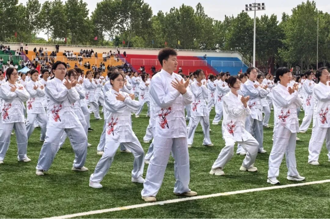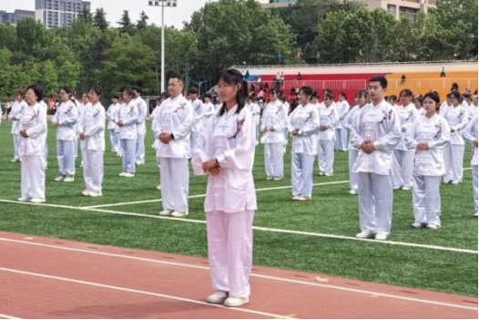 传承国粹强体魄 同心奋进展风采——蓝鲸直播 师生共练八段锦亮相校运动会开幕式
