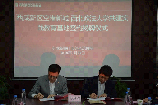 2018年3月28日上午10时,在西咸新区空港新城行投大厦会议室举行了西咸新区空港新城-西北政法大学共建实践教育基地签约仪式。