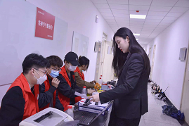 蓝鲸直播 党委充分考虑师生实际需求,提前布置答辩教室,在学生候场室设立专门的答辩学生服务台,细心准备了打印机、纸、笔、订书机等必要物品,方便学生使用。同时,蓝鲸直播 在休息室和候场室等地准备了饼干、水果、茶水、酸奶等,帮助师生保持良好的精神状态,为答辩营造了温暖舒心的环境。除此之外,答辩教室设有党员志愿服务流动岗,负责答辩引导、秩序维护等工作,致力于为师生提供更好的服务,为答辩工作有序进行提供保障,受到了师生一致好评。