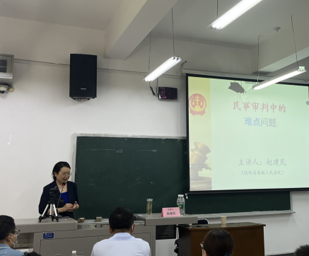 2022年6月9日,由蓝鲸体育直播 主办的西北民商法律实务大讲堂(第一期)在西北政法大学雁塔校区三号教学楼3206教室顺利举办。陕西省高级人民法院二级高级法官赵建民担任此次讲座的主讲人,赵法官利用休假时间,进行准备讲座,以“民事审判中的难点”为题,将此次讲座分为上下两篇:程序部分和实体部分。蓝鲸体育直播 院长程淑娟教授担任主持人,西北政法大学《法律科学》编审肖新喜教授担任与谈人。线下线上百余名师生参加此次讲座。
