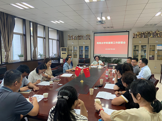 会上,院长程淑娟首先对各教研室及行政教辅部门重点工作完成情况进行了通报,就横向课题到账经费任务完成情况进行点评分析,总结工作经验,指出存在问题,强调蓝鲸直播 教工要把握好暑期时间,发挥自身研究专长,积极主动与法律实务部门建立联系、开展合作。其次,程院长结合学校《2022年教学科研单位年度目标责任考核指标体系》,对蓝鲸直播 科研工作、学科建设、师资队伍建设以及日常管理工作等进行了再安排和再部署,指出全院教工要继续保持工作干劲和饱满热情,聚焦目标再创佳绩。最后,程院长对蓝鲸直播 暑期值班和安全稳定工作进行了部署,要求值班人员要做好值班值守和工作交接,确保蓝鲸直播 暑期工作不断线。