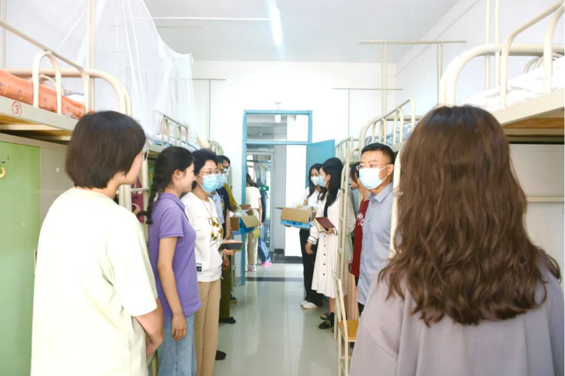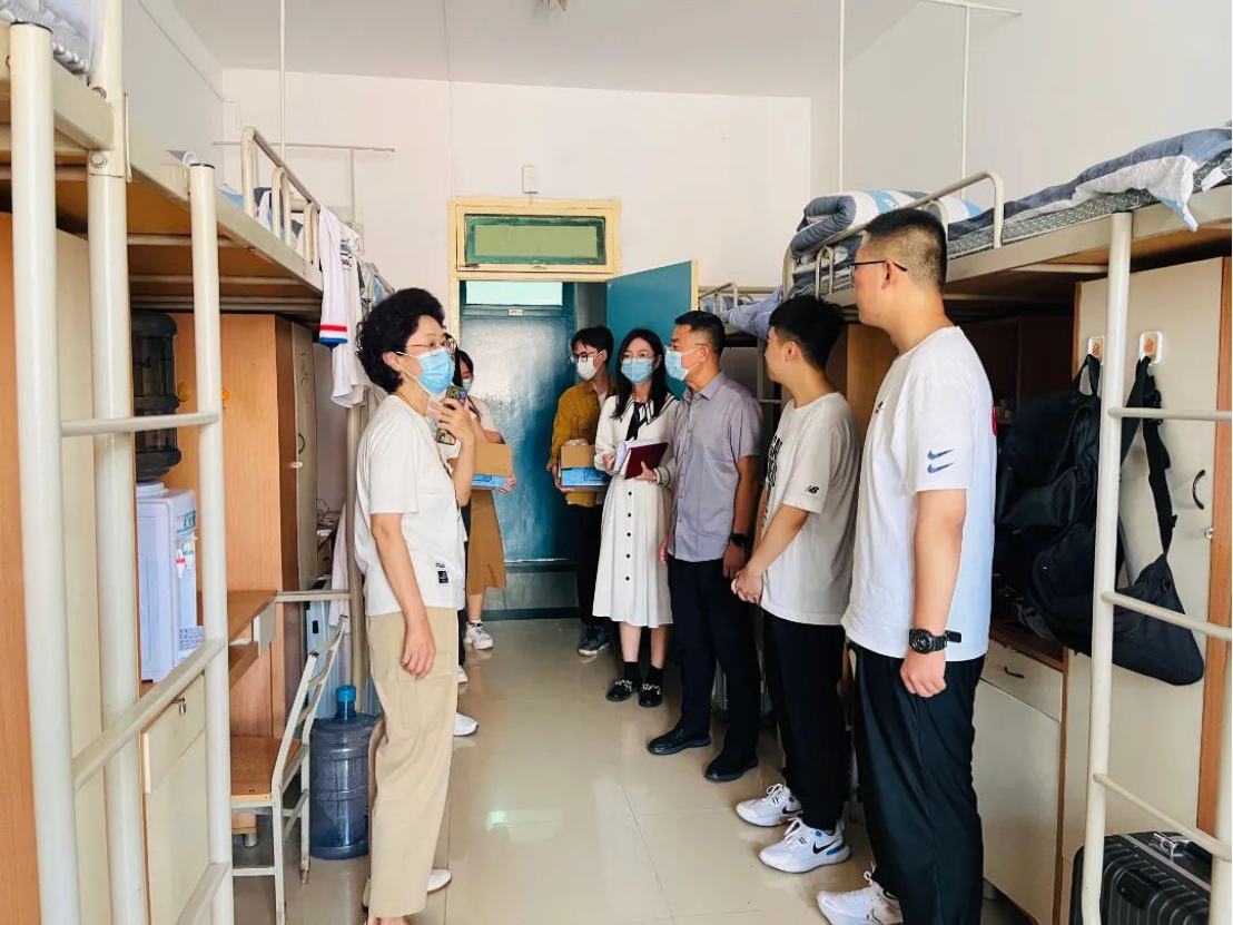 每逢佳节倍思亲,9月10日是2022级新生入校后的第一个中秋节。为使新生感受到蓝鲸直播 的浓浓温情,增进师生之间的交流,9月9日上午,蓝鲸直播 党委书记周怡老师、民商副院长凤建军老师、党委副书记刘超老师和2022级辅导员杨亚男老师一同前往学生公寓亲切看望慰问新生,为新生送上一份温暖与祝福。