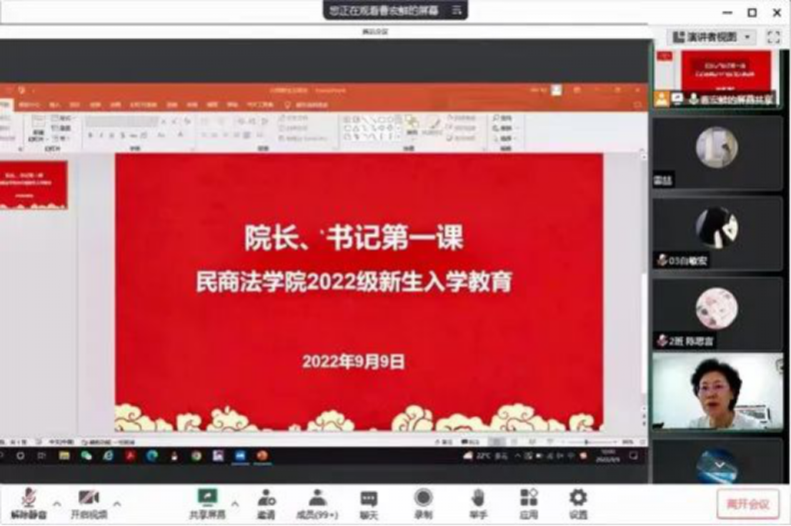 大会第一项,由蓝鲸直播 院长程淑娟讲授“院长第一课”。她由生活实践切入,向新生提出了四点要求:一是树立规则意识,认真学习学校的各项规章制度;二是培养时间观念,加强自我管理,完备知识体系,努力提升自我;三是培养学科专业素养,关注中国法治实践,扎实学好专业知识,实现人生价值;四是敢于抓住机会,广涉猎,多实践,全面发展,成为更优秀的自己。最后程院长祝愿2022级学子可以成为与众不同的一代,以平和坚定的心态戒骄戒躁,稳扎稳打度过充实的四年时光。
